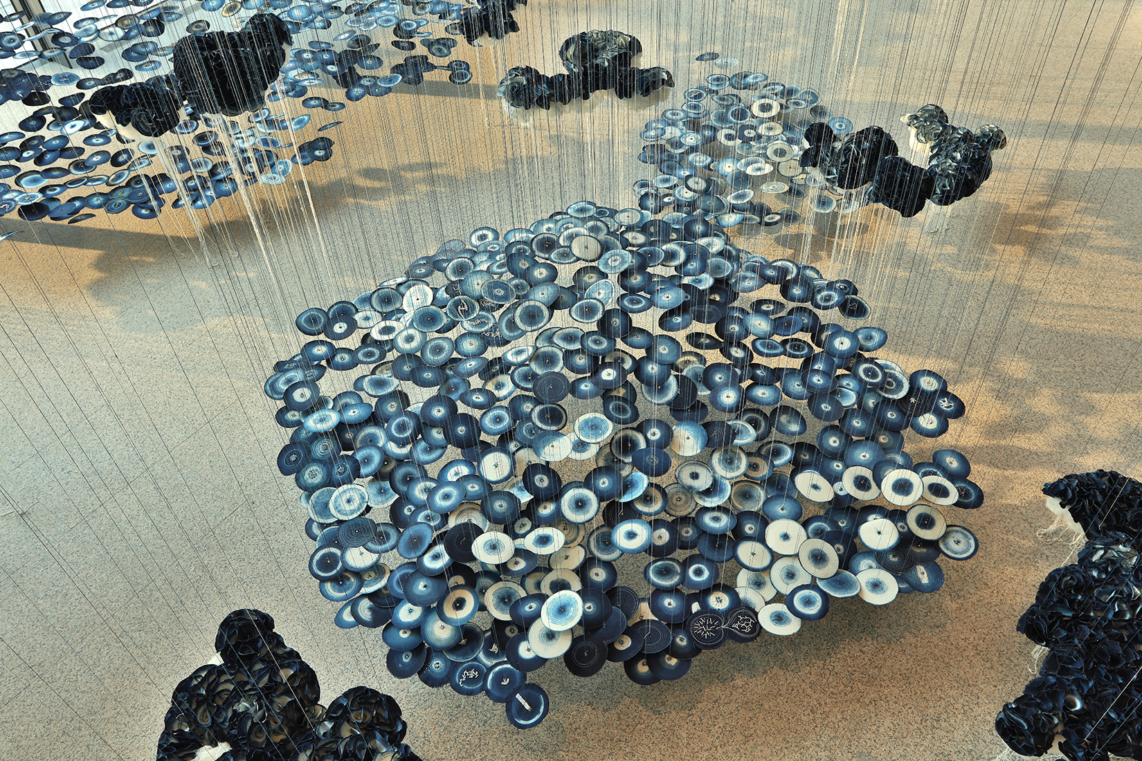 布輪海(三)Ocean of Cloth Wheels Scroll down to content —-台灣國家歌劇院 材質/ 布輪、藍染、迴紋針、光碟、棉麻線時間/ 201ˊ Published by weilin yang 楊偉林 View all posts by weilin yang 楊偉林