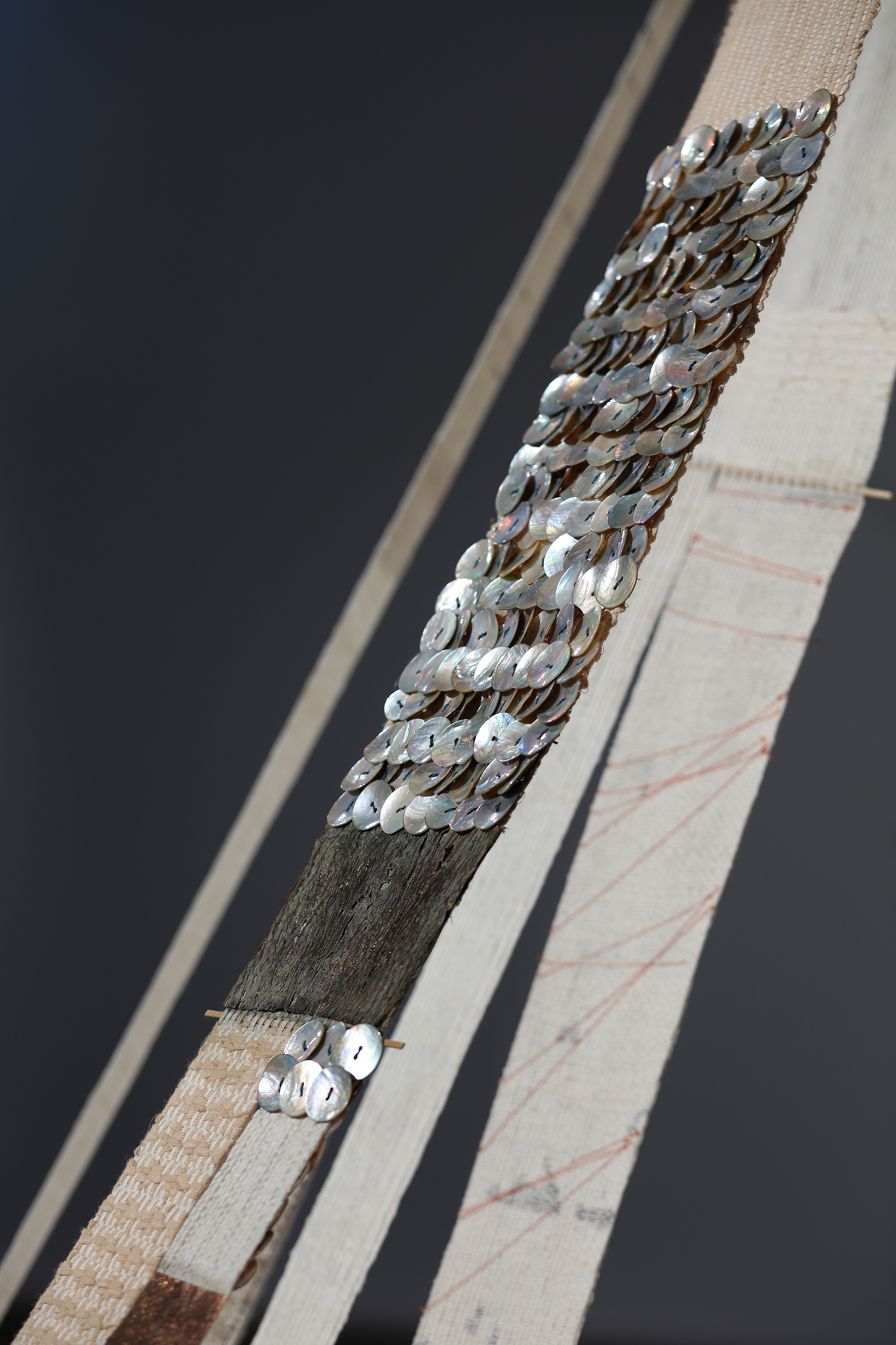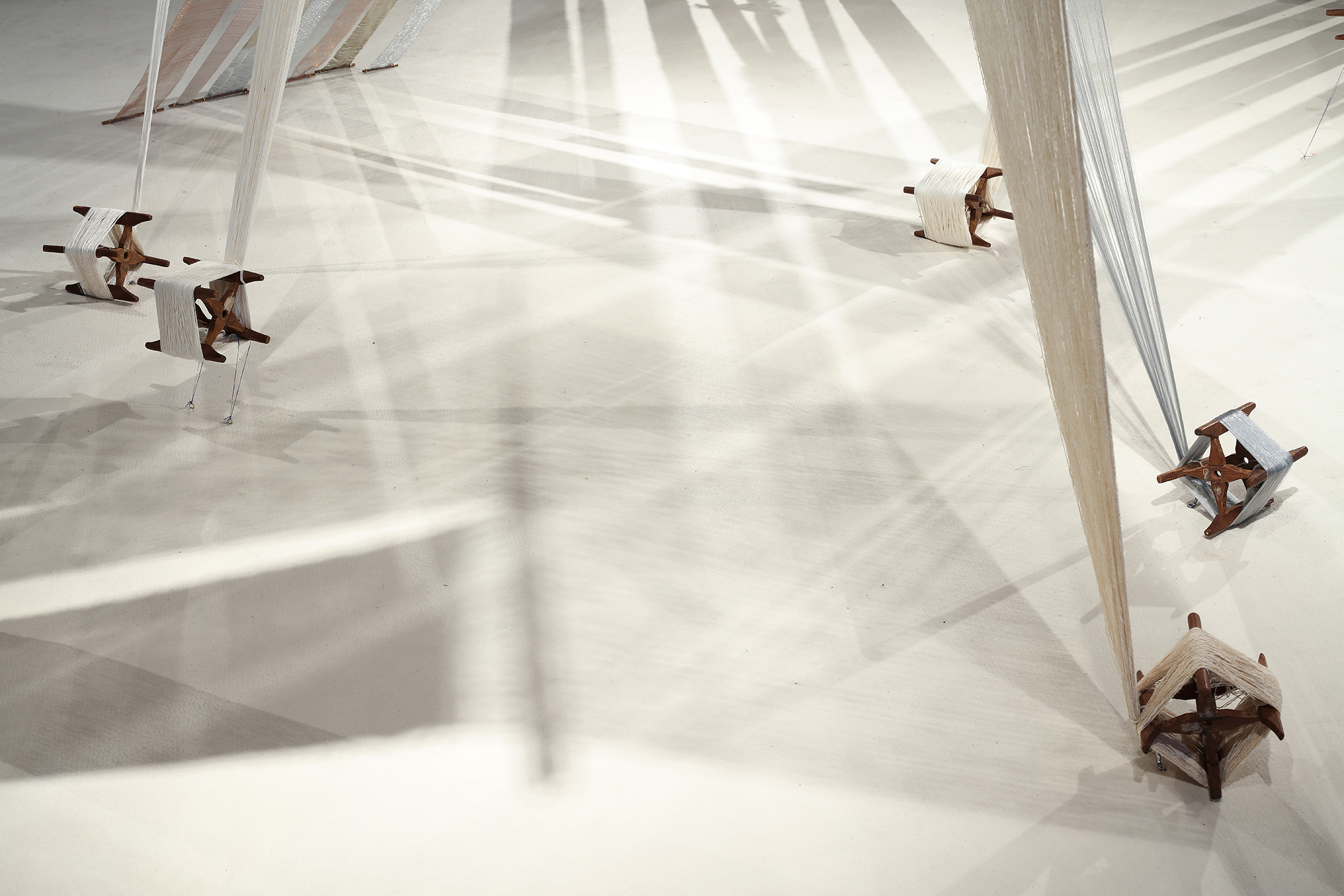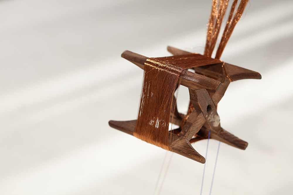 我將原本作為織布機控制經線密度的工具「筬」作為整個作品的結構與象徵的核心,讓織的過程與整個織機的結構化約在觀眾面前,一起探索與攀登。