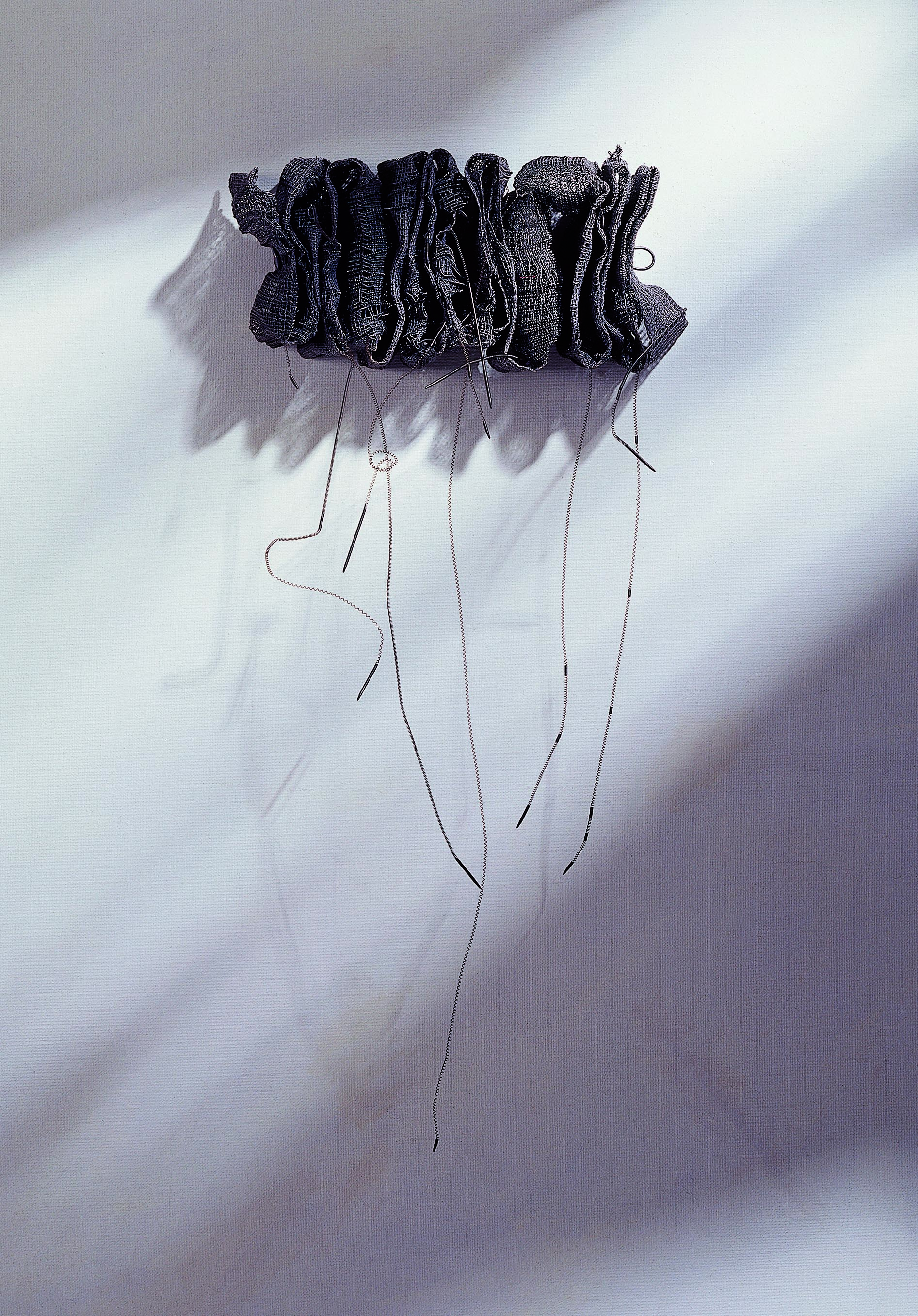 如果不使用統一的長度,而讓每一小時的工作量成為每一格的長度,會是怎樣呢?所以在2000年7月23日這天,我玩了一場在時間之河裡刻舟求劍的遊戲。除長度外,附帶的遊戲規則是,用彈簧做緯線,彈簧可鬆可緊,端視當時的心情而定。當天,十點二十七分開始工作,是暑假,沒有任何人來打斷我的工作,連一通電話也沒有。騰出來的心情,一片空白,我如此清楚的意識著一小時一小時的刻度,靠音樂的節奏來決定彈簧的鬆緊。